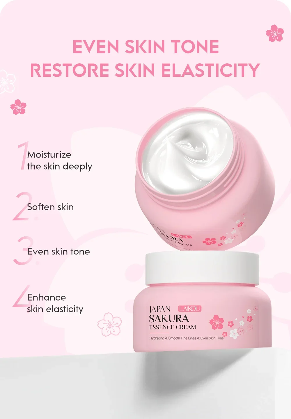 LAIKOU Japan Sakura Essence Cream Cherry Blossom Facial Cream Moisturizing Brighten Skin Care 60g